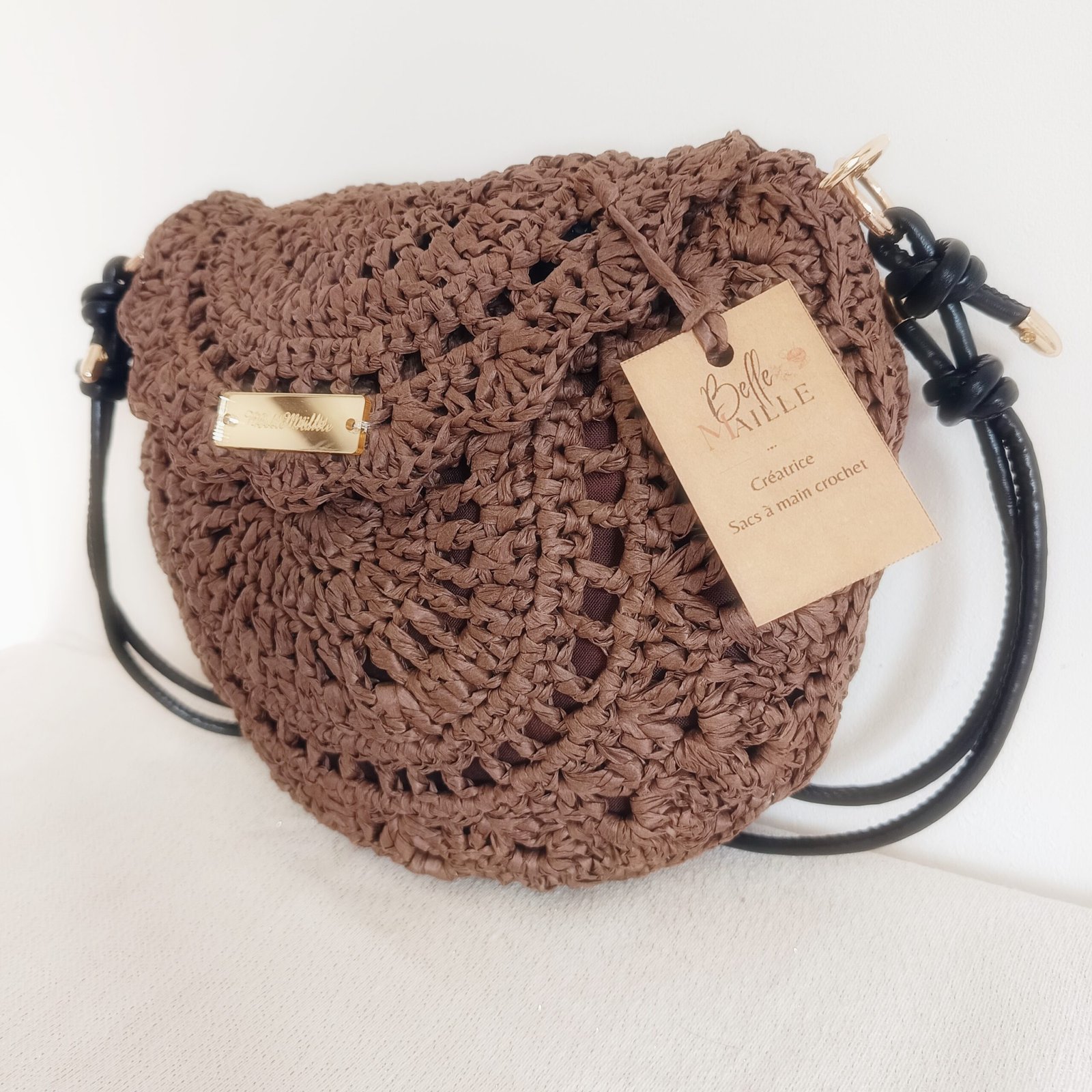 PALOMA – Sac crochet raphia- Coloris chocolat