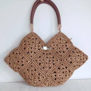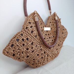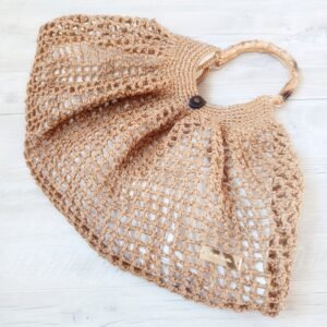 Crocheté à la main en raphia naturel, SOLEA allie fonctionnalité, légèreté, style artisanale et détails soignés.